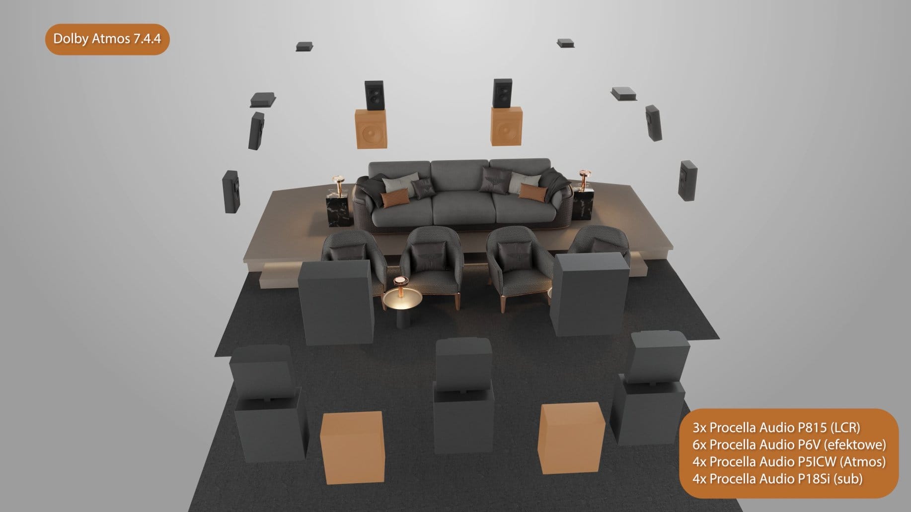 Naszą flagową konfiguracją jest system 7.6.4 zbudowany w oparciu o 22 głośniki.